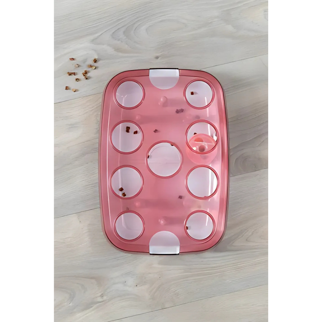 Trainiere die Intelligenz deiner Katze mit diesem Brettspiel. Verstecke Belohnungen im Snackball und beobachte, wie die Katze lernt, lösungsorientiert zu denken, um die Leckerlis zu bekommen.