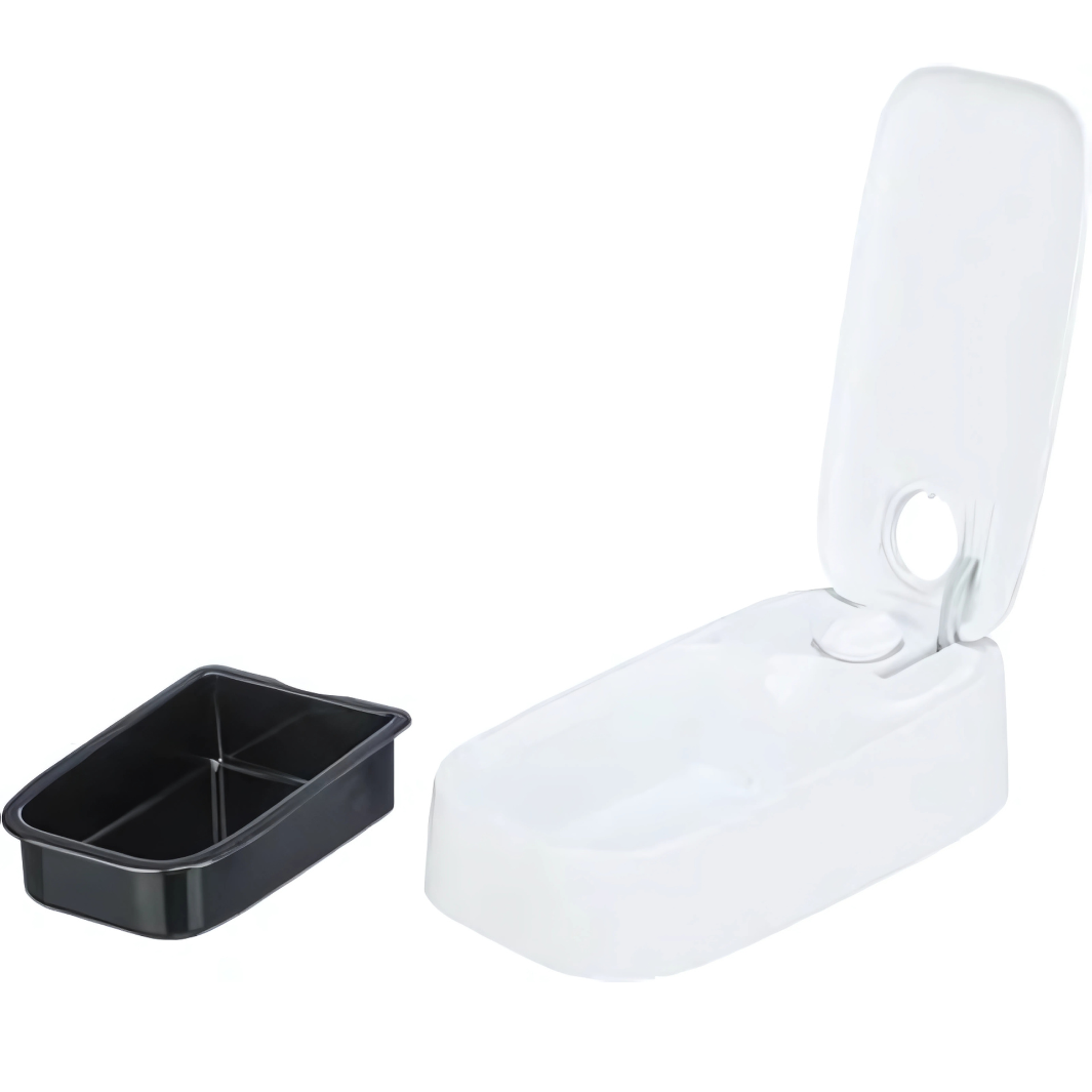 Der Trixie Hunde- oder Katzenfutterautomat sorgt dafür, dass dein Tier auch dann Futter bekommt, wenn du nicht zu Hause bist.