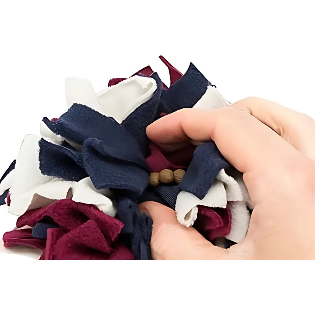 Dieser lustige Ball ist aus Polyester gefertigt und besteht aus Fransen in verschiedenen Längen. Zwischen diesen Fransen kannst du Belohnungsleckerlis für den Hund verstecken. Der Hund muss dann den Ball rollen und werfen und zwischen den Fransen schnüffeln, um seine Belohnung zu bekommen. Das sorgt für Ablenkung und verhindert das Verschlingen, was zu einer gesünderen Verdauung beiträgt!