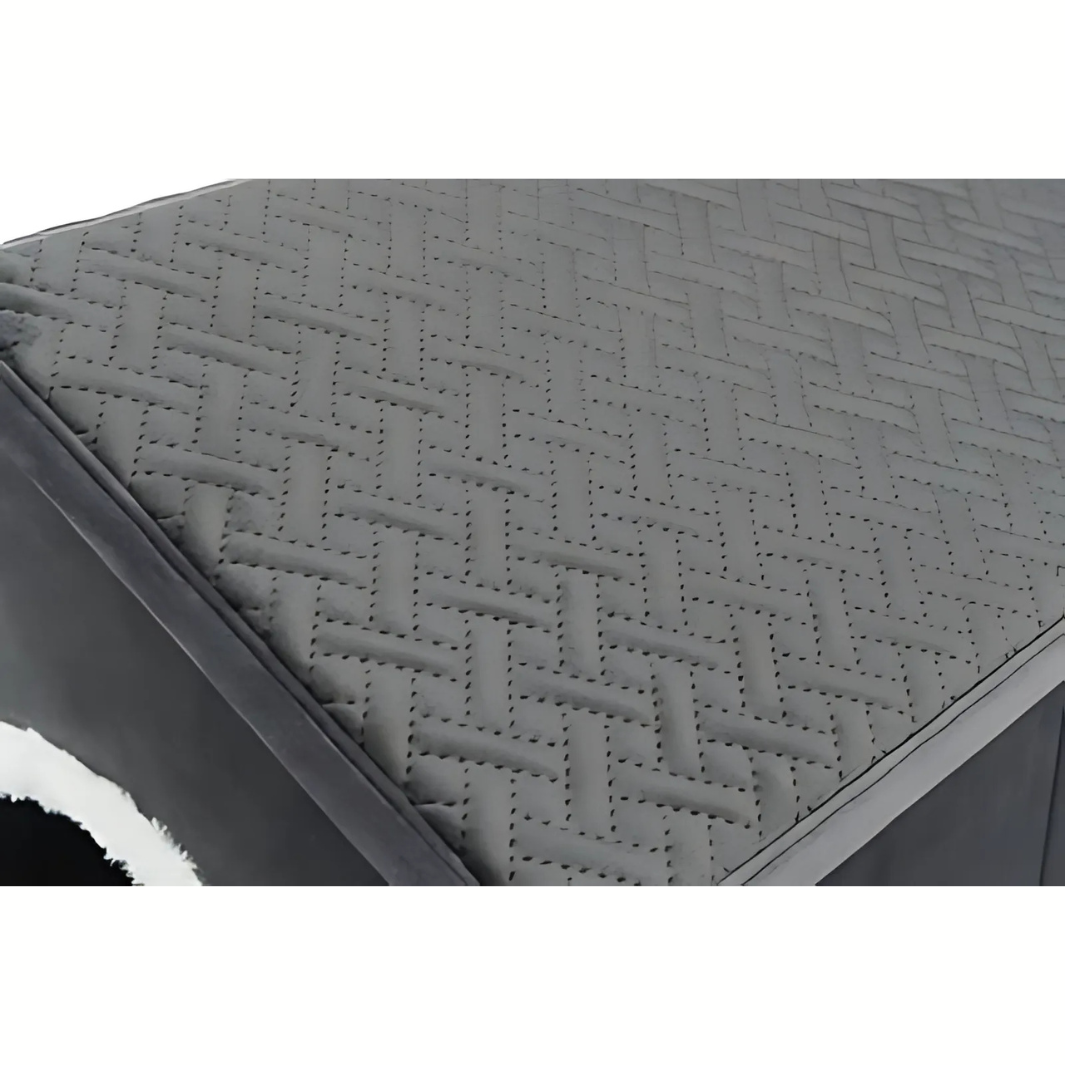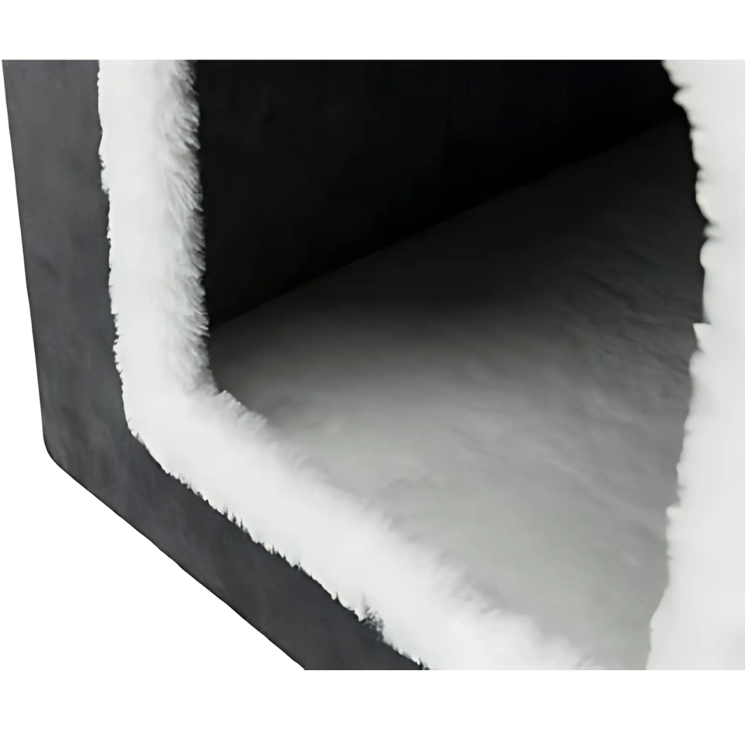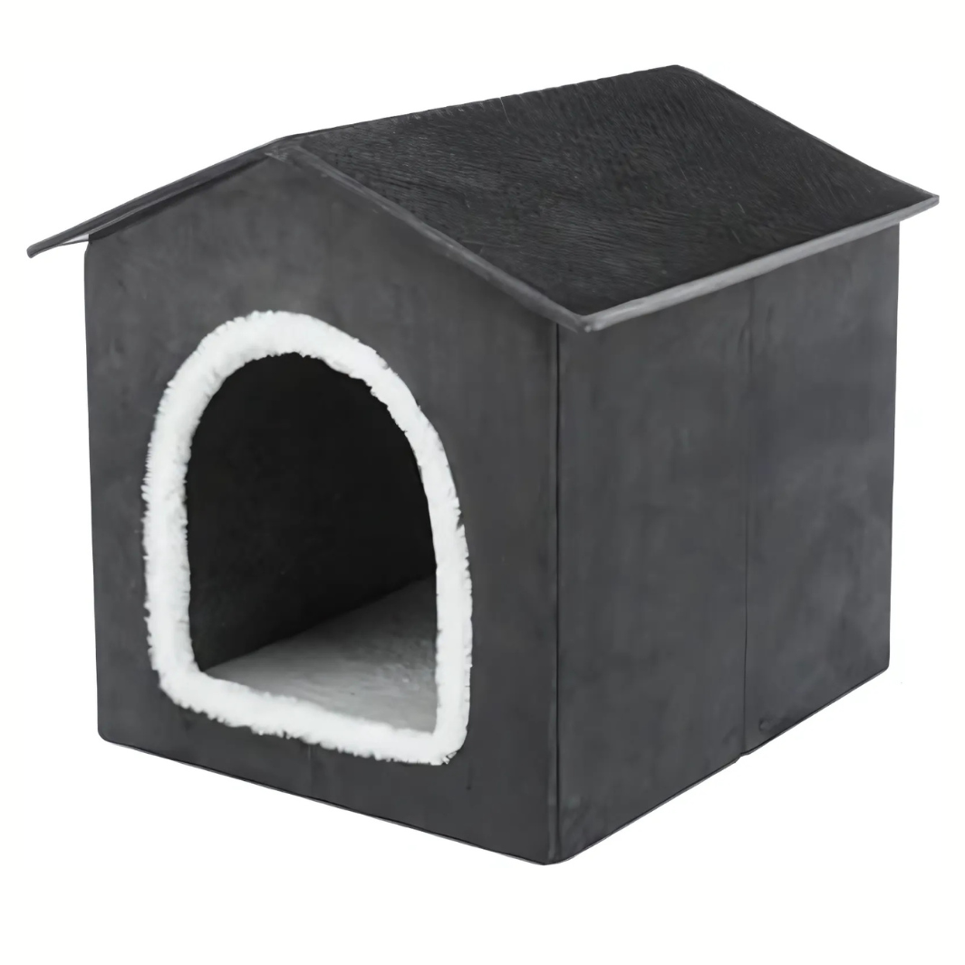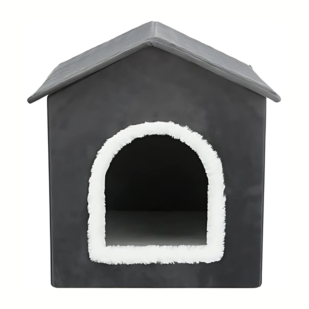 Das Haus hat ein Spitzdach und kann zur platzsparenden Aufbewahrung zusammengeklappt werden. Die rutschfeste Unterseite erleichtert deinem Haustier das Ein- und Aussteigen ohne Ausrutschen.