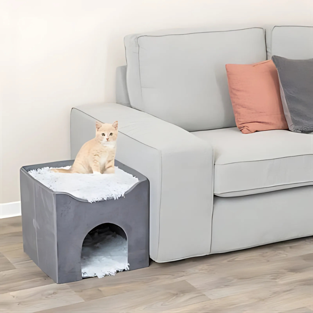 Das Trixie Katzenhaus Harvey ist ein kuscheliges Versteck für deine Katze, mit luxuriöser Veloursoptik und weichem Langhaarplüsch für optimalen Komfort. Dieses vielseitige Katzenhaus ist nicht nur ein schöner Platz für deine Katze, sondern kann auch als stilvoller Beistellkorb in deiner Einrichtung verwendet werden. Das Katzenhaus ist zusammenklappbar und lässt sich bei Nichtgebrauch kompakt verstauen.