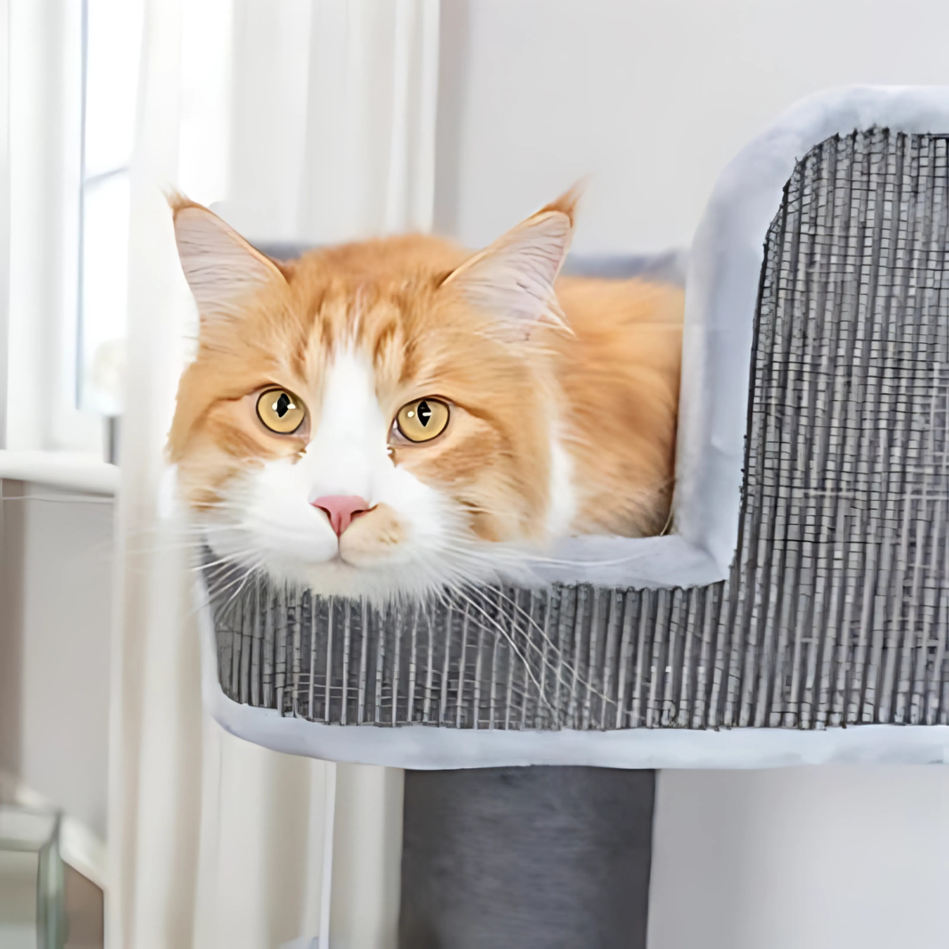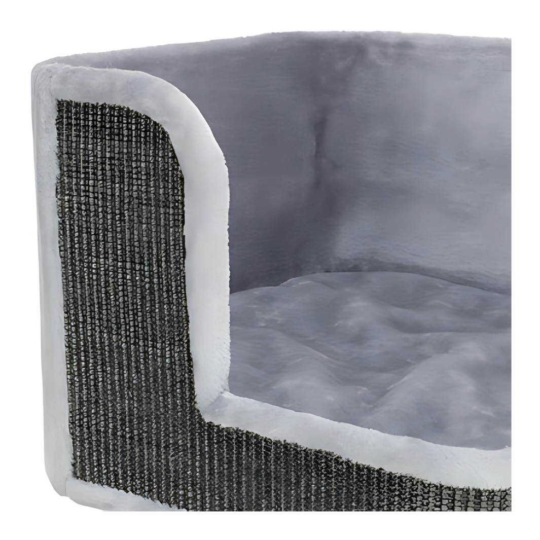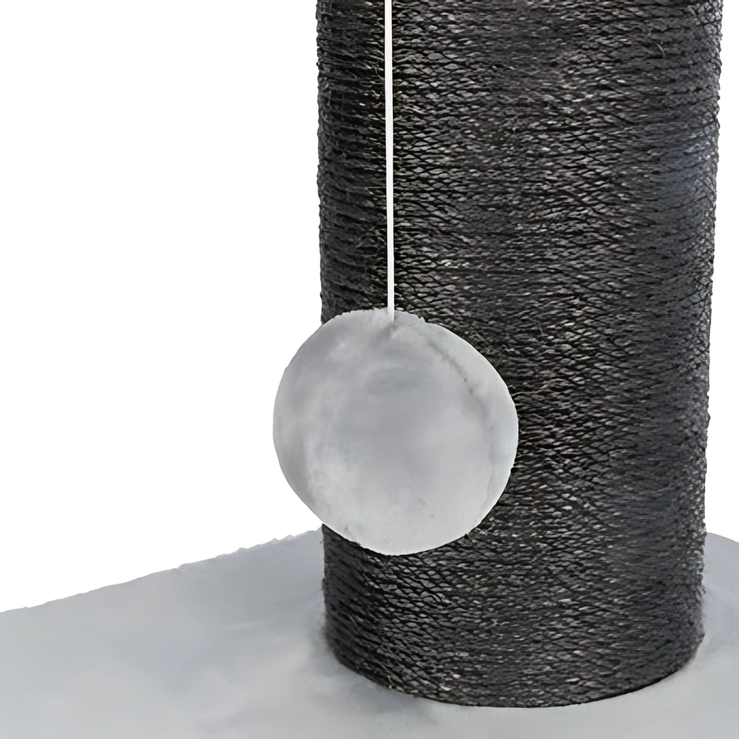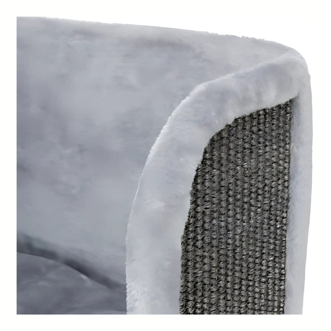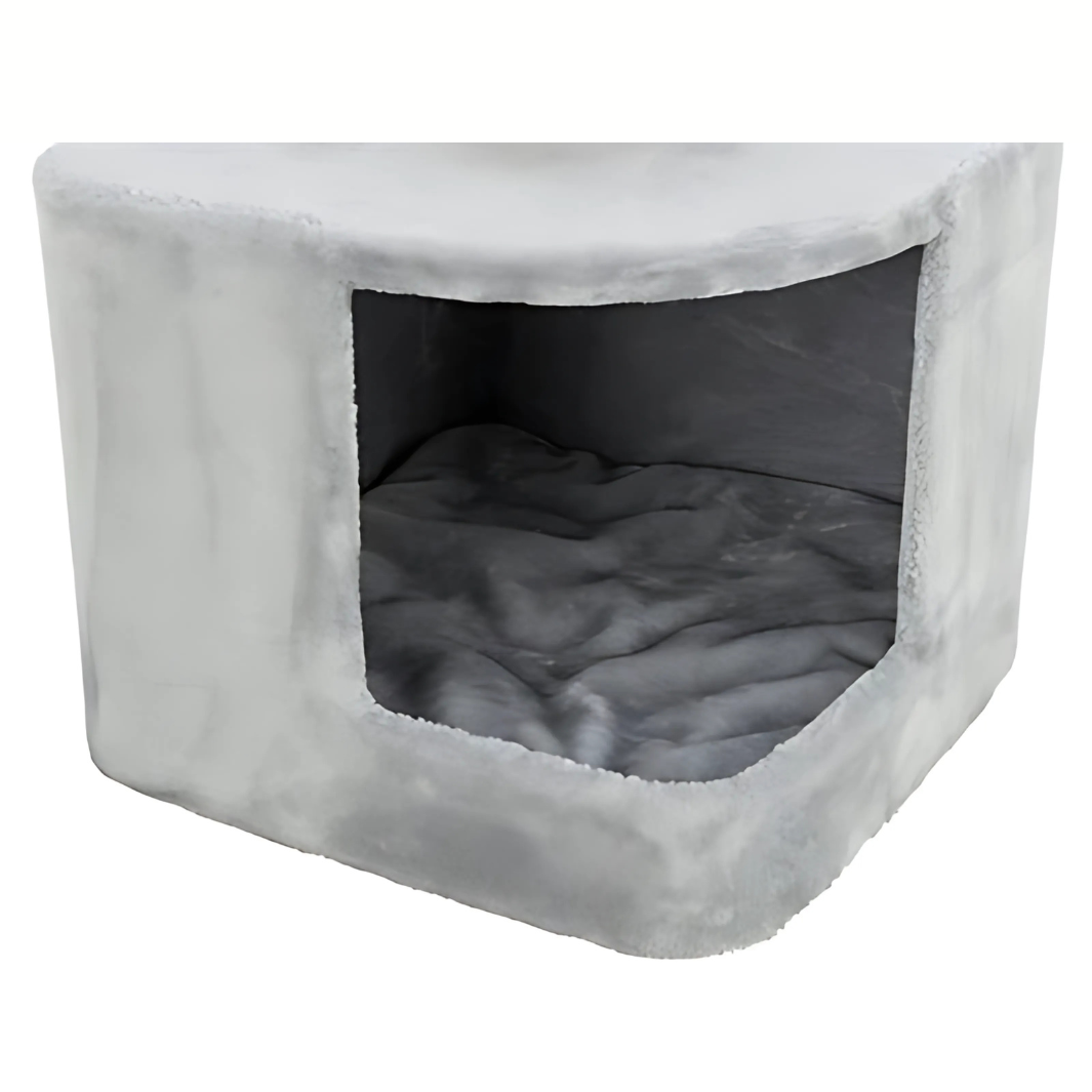 Hergestellt aus starkem Sisal (ø 6 mm) und hochwertigem Plüsch (Polyester, 400 g/m²) für ein dauerhaftes und komfortables Erlebnis. Der Unterschlupf im Inneren ist vollständig mit Plüsch ausgekleidet und bietet deiner Katze einen warmen und sicheren Rückzugsort.