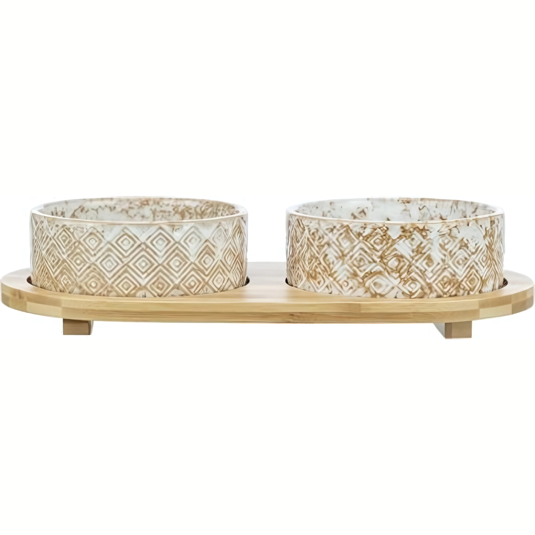 Das Trixie Set Futter- und Wassernapf ist ein schöner doppelter Futter- und Wassernapf für deinen Hund oder deine Katze. Die Schalen sind aus Keramik gefertigt und sitzen in einem schönen Rahmen aus Bambus. Das Set ist mit Gummifüßen ausgestattet, die ein Verrutschen beim Fressen verhindern.